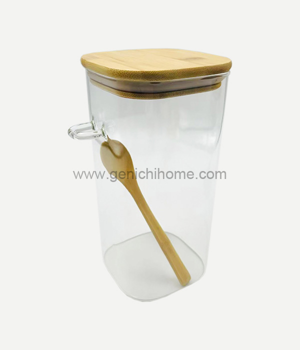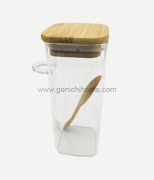 Sklenená nádoba s priemerom štvorcového veka 10 cm